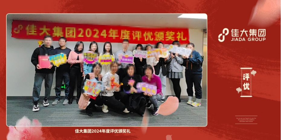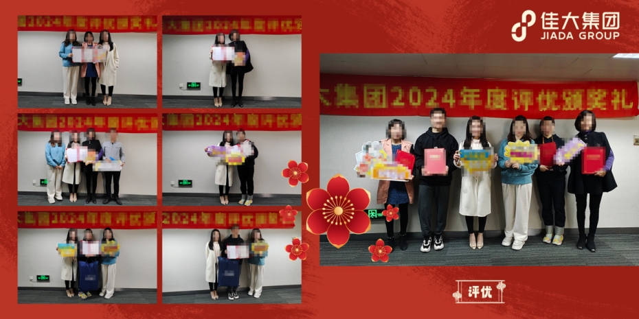 以爭當先進、樹立楷模為理念,佳大集團組織了2024年度優秀獎項評選活動。設立“杰出新人”、“優秀員工”、“優秀管理者”和“優秀團隊”四類獎項,活動受到了全體員工的踴躍參與,共收到約50份報名申請。經過三輪的投票評選和高管綜合評判,公司于2025年1月3日組織“2024年度評優頒獎活動”。在本次活動上,對每一位優秀代表進行表彰和頒獎,充分傳遞榜樣的力量,明確大家的努力方向。